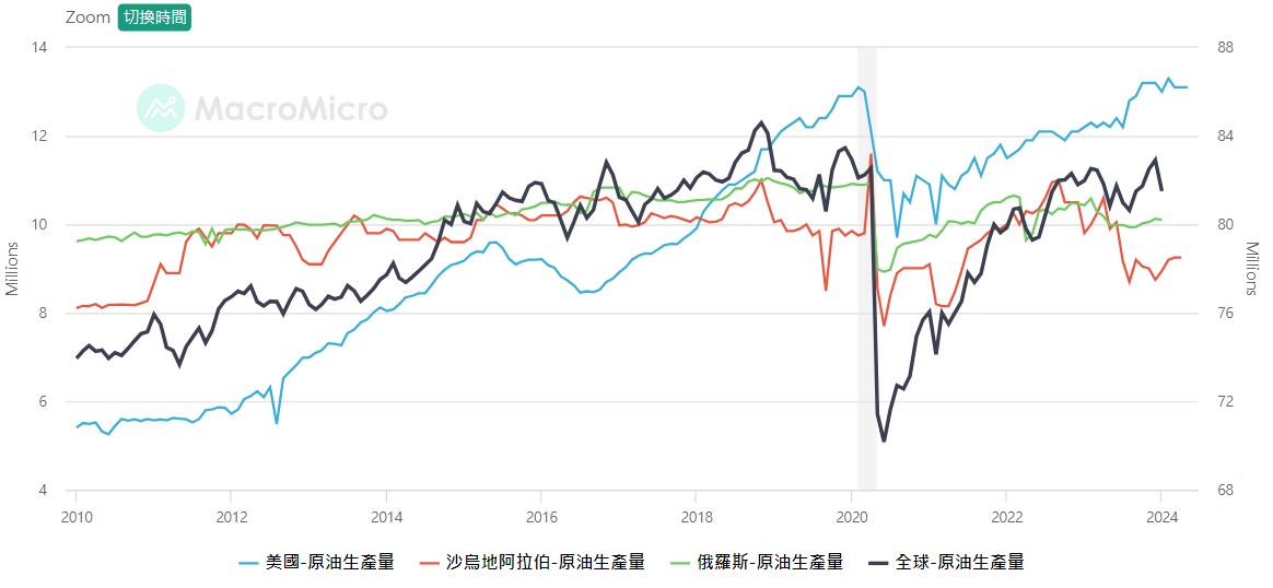 以全球產量來看,由於美國岩頁油持續增長,出口量穩定上升,加上全球氣溫回暖,岩頁油提取作業難度下降,都有助於產量。2023年11月OPEC+減產措施發布時並未造成國際油價飆漲,全球原油供需預期穩定,即使週日(6/2)OPEC+宣布將延長減產措施,對原油市場影響幅度恐怕也無想像中大。