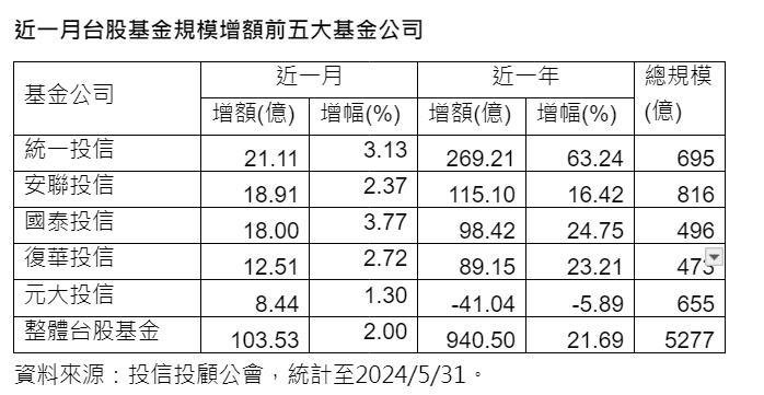 台股基金大增百億 規模創新高 統一投信貢獻逾20億