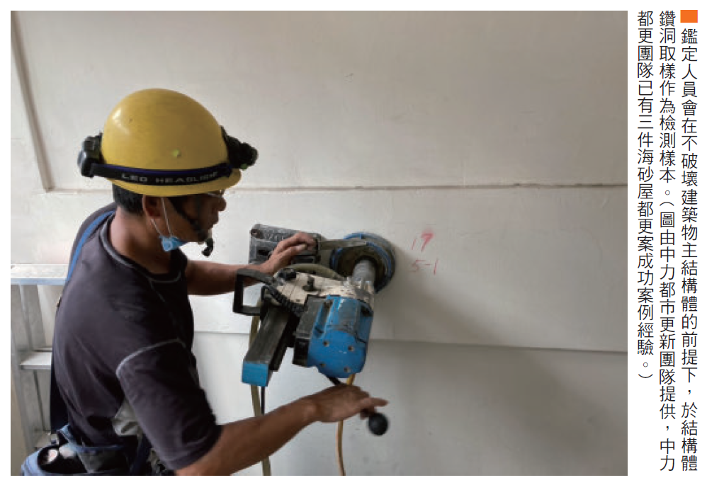 2.海砂屋鑽心取樣,須部分住戶同意讓鑑定人員進入室內鑽心取樣。