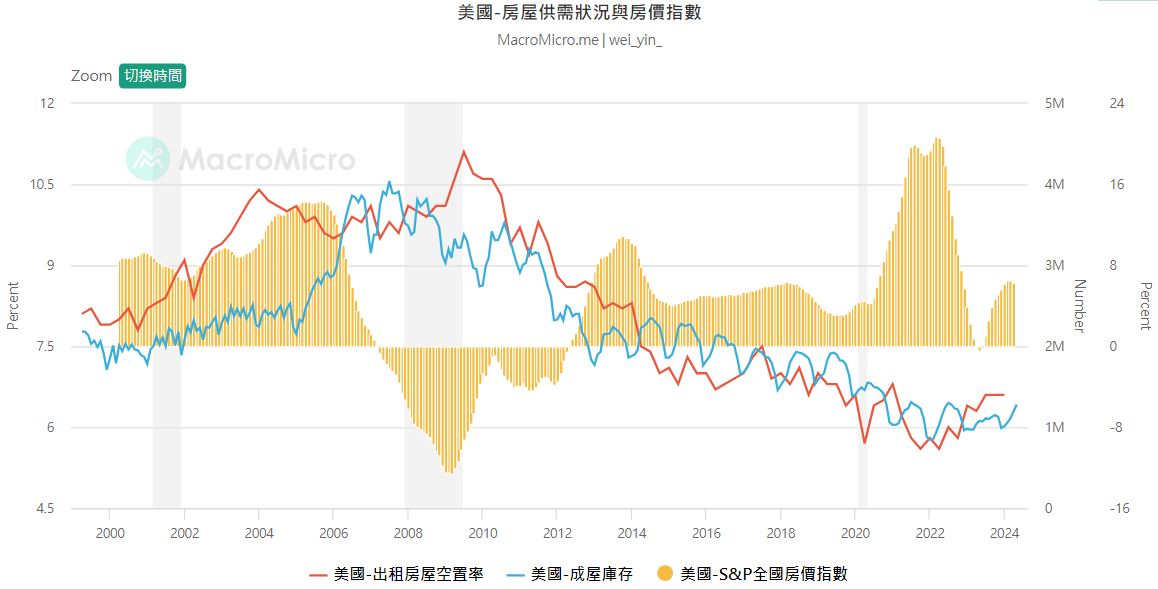 美國房租物價指數雖有所趨緩,但房市供給情況並未改善,房價指數仍居高不下。
