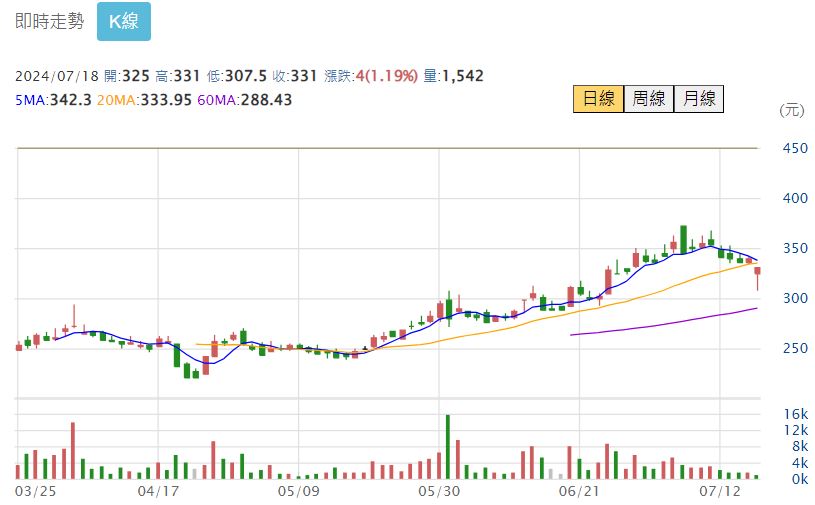 再生晶圓廠中砂(1560)近日股價回檔修正,今(18)日開盤價325.0元,盤中一度跌至307.5元,跌幅6.32%,目前已回升至325.5元維持震盪,截至上午9點25分成交量為949張,從成交量來看空頭力道疲弱,從線型來看則屬盤整階段。