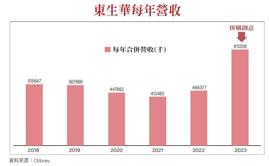 以往東生華主要專注於醫院方面業務,併購高峰與創益後等於吸收診所、藥局的通路,佔市場比例增加至60%。東生華於2023年底併購創益後,全年合併營收由4億翻倍為8億,今年4月併購高峰後營收也有明顯成長,並期望今年合併營收能達12億元。