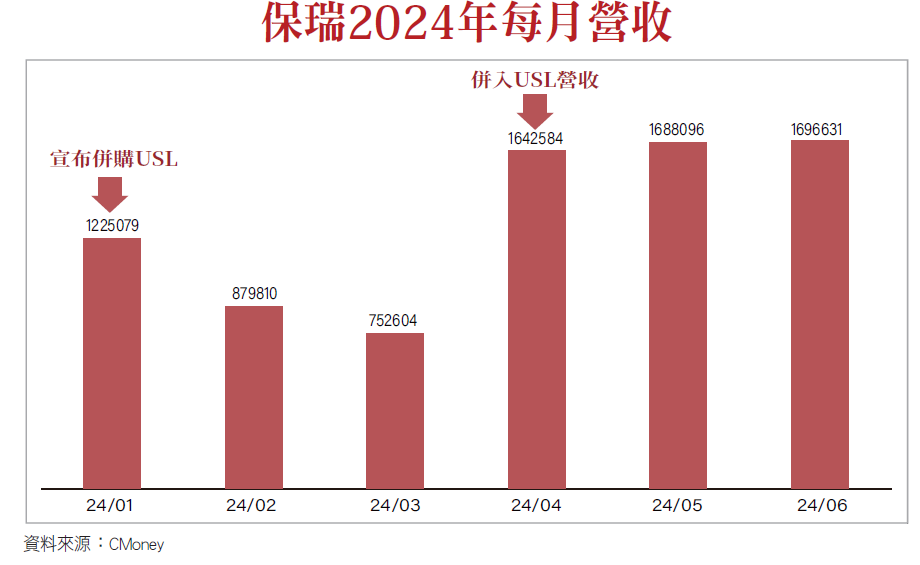 保瑞今年1月宣布收購美國百年藥廠Upsher-Smith(USL),4月起認列其營收,USL是明尼蘇達州當地最大製藥廠,過去以銷售特殊學名藥為主軸,年產能達50億顆,此併購案可說是保瑞進入美國市場的里程碑,為今年最具指標性兩項併購案之一,保瑞表示,併購後增加的產能使保瑞得以接觸更多國際品牌。