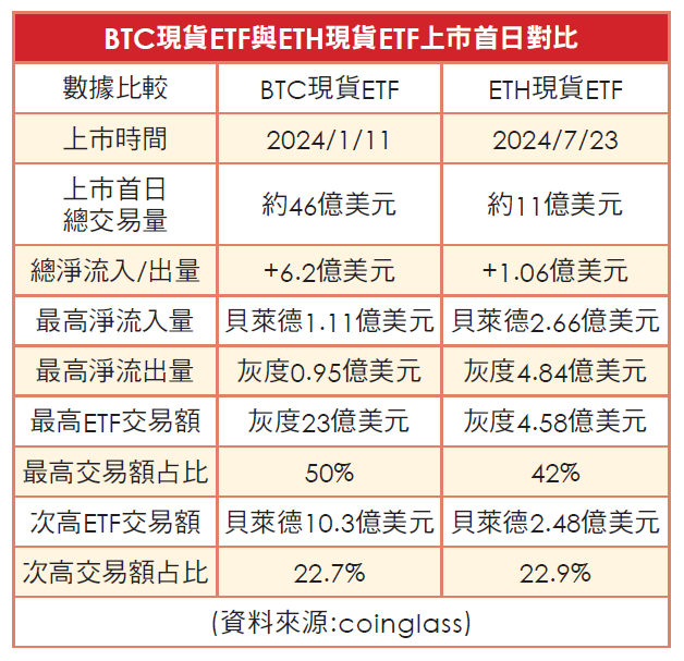 美國時間的2024年7月22日,美國證券交易委員會(SEC)批准了9支現貨以太坊ETF的申請,並在同年的7月23日開始,開放在美國三大交易所上市交易。隨著第一天的交易結束,許多數據都能夠一一呈現出這項ETF日後對ETH價格,甚至是對整個加密貨幣市場的影響,因此,本文從ETH現貨ETF上市首日的數據展現,並透過與BTC現貨ETF的數據比較,探討後續的價格走勢變化。