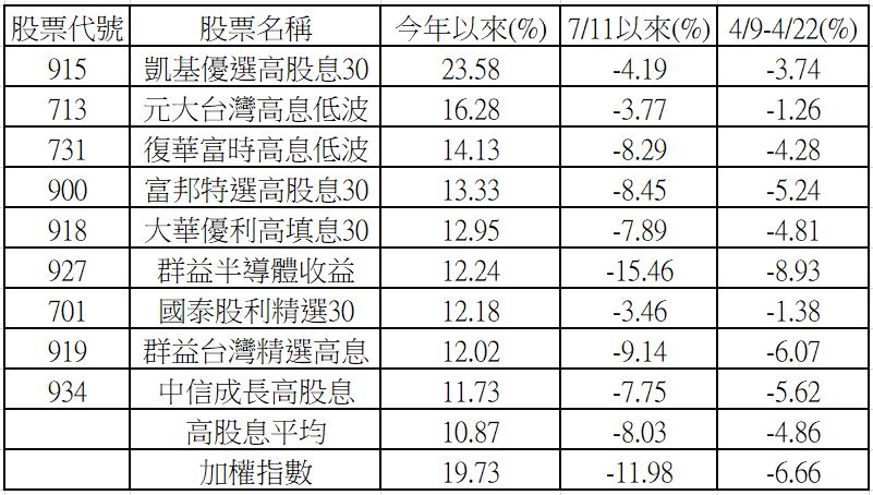 台股今年以來經歷兩波5%以上的修正,最近這波下殺更出現史詩級的跌點。經歷這波血洗,台股年初以來的績效仍有19.73%,反觀高股息ETF,今年以來平均報酬仍繳出雙位數的10.87%,優於平均表現的總共有9檔,其中僅有一檔凱基優選高股息30(00915)同時打敗大盤,今年以來股價含息報酬達到23.58%,繼2023年榮登高股息ETF績效王,今年至今繼續蟬聯。
