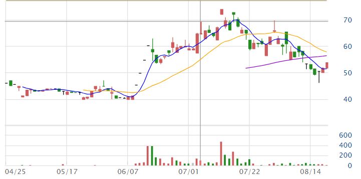 皇家美食本就處空頭趨勢,7月營收無6月出色,加上第二季、半年財報皆虧損,可見皇家美食營收雖增加,獲利卻無增長,無法對股價帶來利多影響。這兩日股價雖有反彈,但離突破前高仍有一大段距離。