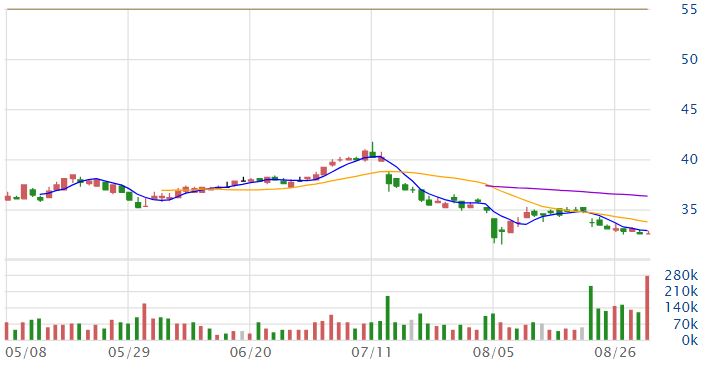 今(30)日中信金更是驚天暴力,盤中成交量高達27萬張,超越新光金(2888),為成交榜上冠軍。中信金今日開盤價32.60元,終場收在32.65元,漲幅0.15%。