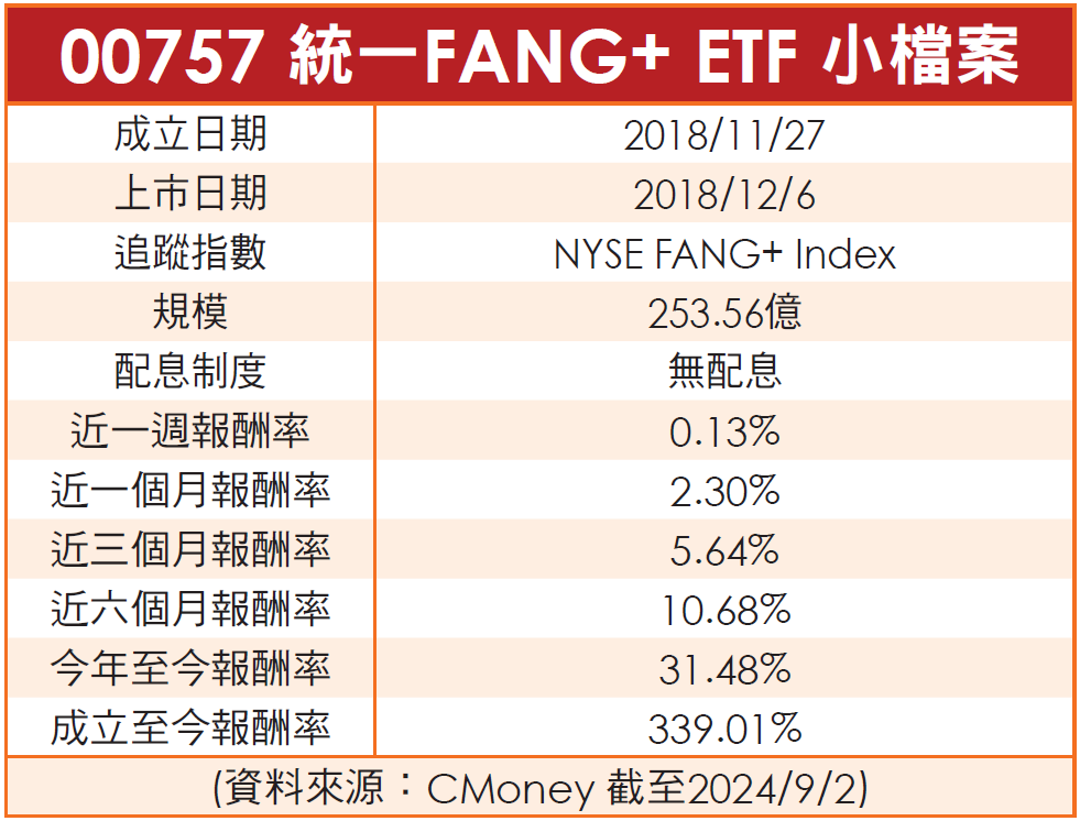 不過,因個股的財報表現好壞參半,部分大型科技公司股價反彈無力,連帶影響相關全球科技型ETF的走勢,其中又以「00757統一FANG+」的淨值跌幅最高。
