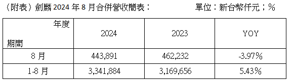 劍麟8月營收達4.44億元 累計前8月營收續創歷年同期新高 受惠汽車安全零組件產品於新車滲透率持續穩定提升