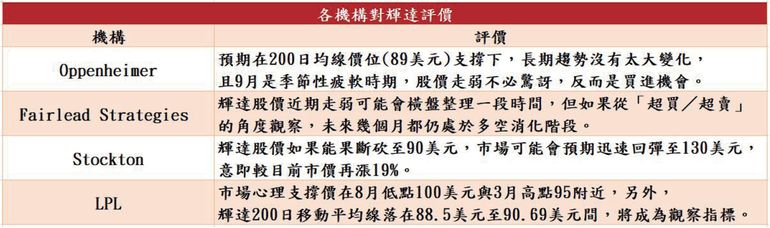 而各大機構評價方面,多為提醒投資人需注意200日均線,目前尚未看壞輝達股價。