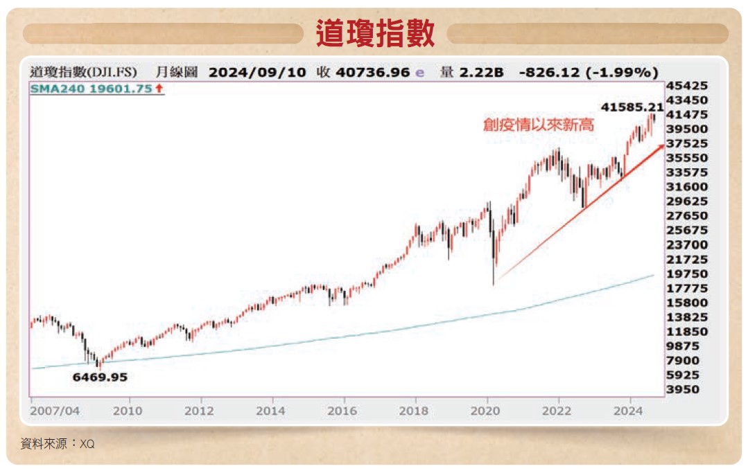 可是道瓊指數8月30日才創歷史新高價41585.21點,9月10日收盤價還有40736點,就算那斯達克指數比較弱些,但距離歷史新高的18671.07點也僅差-9.31%,對於持有股票等金融資產的美國人來說,應該覺得經濟不錯才對。