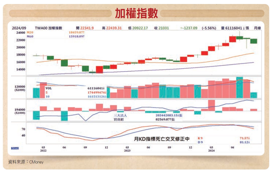 9月11日川普與賀錦麗的首場辯論會,正好是台股的盤中,導致成交量明顯的萎縮,就量價關係而言,短期的量縮當然是有籌碼沉澱的轉折機會,但對中長期來說,長時間的量縮代表著階段性的人氣退潮,不利波段漲勢。
