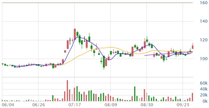 景碩今(27)日股價發酵,早盤以111.0元開出,盤中來回震盪,股價暫報114.5元,漲幅6.51%,截至上午10點成交量為28050張,量增426%,目前成交量已達昨(26)日全天成交量之兩倍。