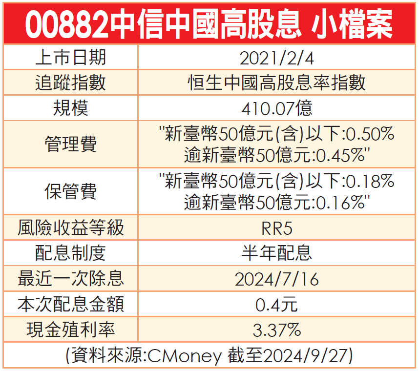 盤點近期市面上成交量較高的前四支中概ETF,分別是元大滬深300正2(00637L)、中信中國50正2(00753L)、富邦恒生國企正2(00665L)及中信中國高股息(00882)。