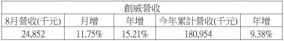 8月最新營收為2485萬元,月增11.75%,年增15.21%,連續5個月成長;今年1到8月累計營收為1.8億元,年增9.38%。最新EPS為0.41元,季增24.24%,連續2季成長,近四季EPS為1.4元。