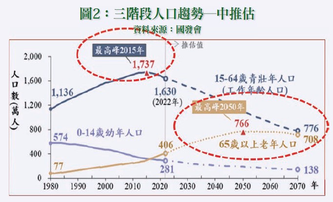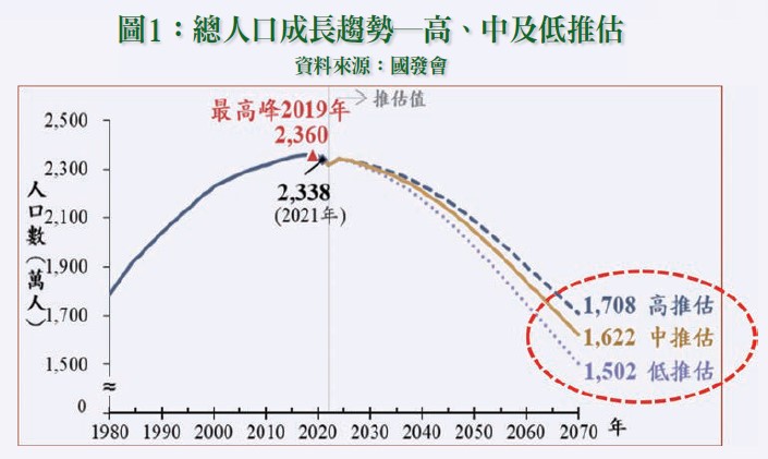 依國發會所公布的「中華民國人口推估(2022年至2070年)」,主要重點如下: