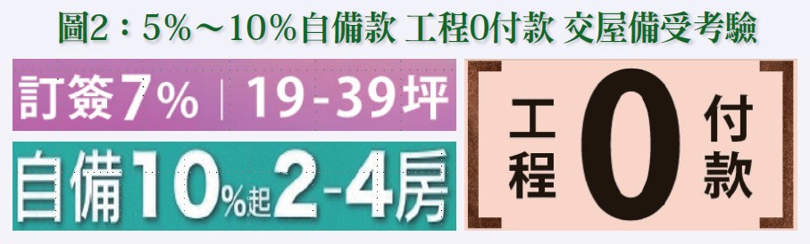 其次,針對這次信用管制措施衝擊最大的應該是即將交屋並且需要辦理貸款的承購戶,另外就是小建商;此外,不斷創新高價,加以投資與投機客超過二至三成者比比皆是,尤其是近年大量低價且超額供給的蛋白區,房價跌幅極有可能超過兩成,其對建築產業的流動性風險所可能衍生的金融業系統性風險之潛在威脅,亦是備受主管機關關切的一大焦點;其次,如果是小建商小建案,又非好地點、好區位、好產品,尤其是都會邊緣的鄉鎮地區,預售時常見以「5%~10%自備款」(詳請參閱圖二)促銷,除交屋不易之外,房貸恐亦難上加難!