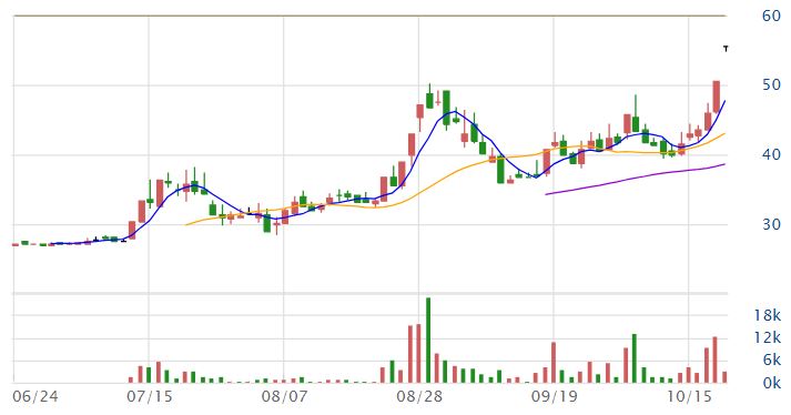 電子股晋倫(6151)今(21)日一早報喜,早盤直接開在漲停價,報55.6元,漲幅9.88%,截至上午9點19分成交量為2921張,目前仍有2210張買單排隊等候中,線型為多頭趨勢。