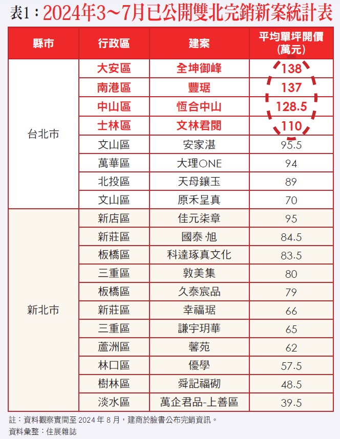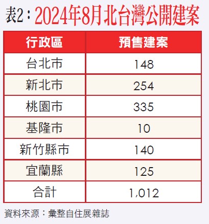 其次,如再就住展雜誌於今年8月所公布之2024年3~7月已公開雙北19個完銷新案(詳請參閱附表一)與2024年8月北台灣公開建案相較(詳請參閱附表二),當可了解所占比例不多,並且大都為小建案,由此亦可充分了解當前市場景氣之動向為何?