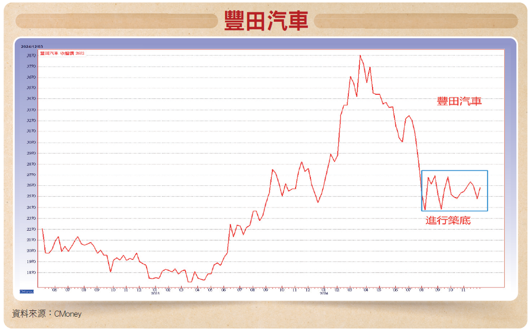 通用汽車(GM)從8月5日的38.84美元漲到61.24美元、+57.67%漲幅,特斯拉的上漲雖然跟油價看跌無關,但對於汽車類股的人氣回籠還是有正面的幫助,至少豐田汽車US ADR(TM)進入橫盤築底,裕隆、汎德永業、和泰車等個股也是進入橫盤築底,傳統上過年前是買車的旺季,在汽車零件國產化議題告一段落後,有機會補漲。