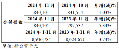 世界健身-KY (2762)今(10)日宣布,2024年11月合併營收創下新高,達新台幣840,101千元,與 2023年11月相比,成長5.34%。而世界健身在11月新增兩家新健身俱樂部,業績表現亮眼,持續鞏固其台灣健身領導品牌地位。