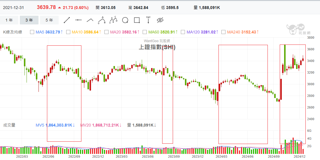 從2022年10月以後,台股迎來了新的一波多頭,在2023年又隨著ChatGPT的橫空出世,再度迎來AI元年,帶動多檔過去的大牛股向上噴出,也讓加權指數一路上漲到了24,416點的最高點。然而中國在疫情解封後,中國雖推出了一大堆刺激經濟的措施,然而上證指數卻只是走了一個長達兩年之久的大箱型區間。究竟在這兩年多的期間,中國推出了幾次刺激市場的政策呢?