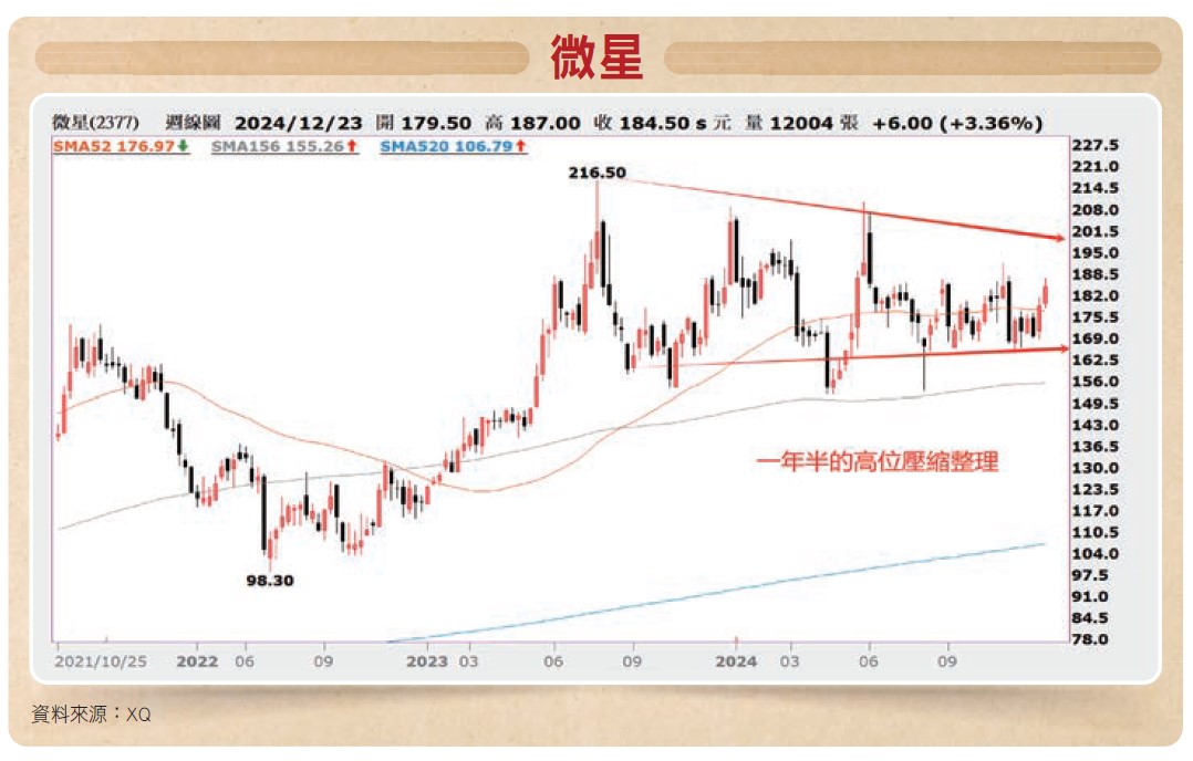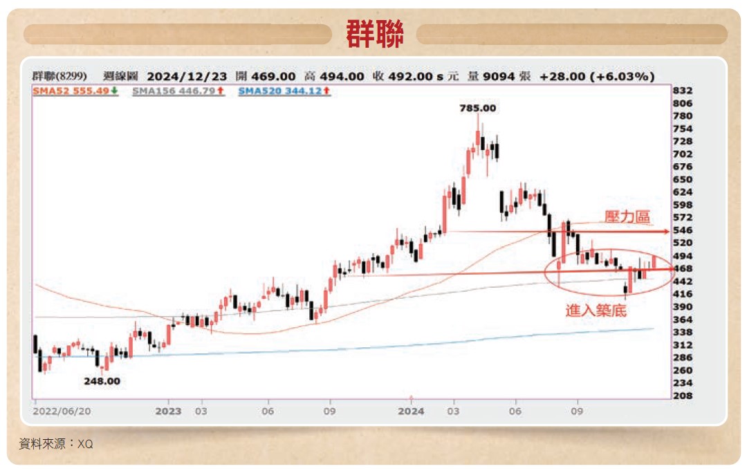 2024年處在探底走勢的記憶體族群、載板、矽晶圓、藥房、軍工、塑化、鋼鐵、餐飲等族群進入2025年後,或許有機會展開一波中期反彈,甚至回升。