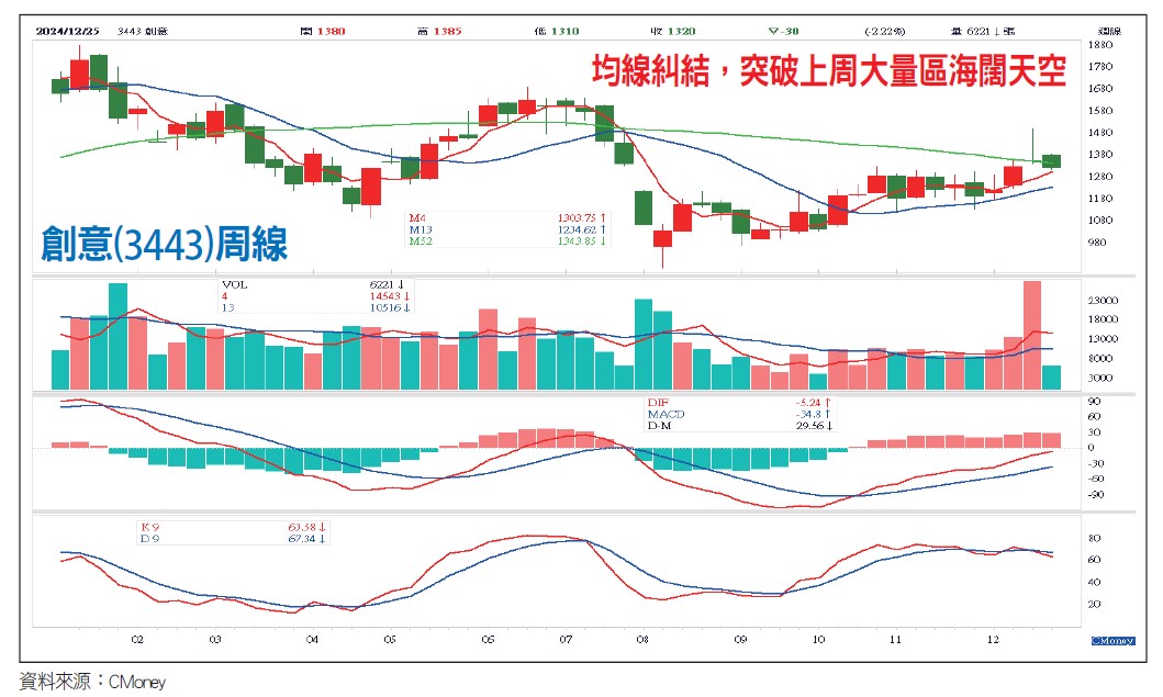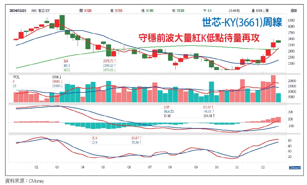 晶心科則切入Meta 加速器MTIAv2設計,有望在明年轉虧為盈,大摩調高目標價至608元。低價股方面,安國(8054)併購星河半導體轉型IP及ASIC領域,日前成功奪得數個客戶3奈米、4奈米及7奈米等CoWoS先進封裝委託設計案,有望在明年貢獻營收,前11月合併營收19.4億元,年增18.2%,為近八年同期最佳,股價已在低檔起步,值得留意追蹤。