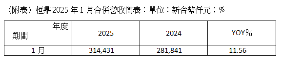 桓鼎股份有限公司(5543)於今日公布2025年1月合併營收達3.14億元,月增13.24%、年增11.56%,受惠旗下金屬建材外銷業務穩健提升,以及營造工程業務各項重大工程專案執行順利,施工進度符合預期,其中部分專案更較原定期程超前,挹注營建工程收入認列進展良好,再加上綠色能源業務應用於電池模組產品接單、出貨量能放大,帶動1月營收站穩三億水準,並寫下歷年同期次高表現。