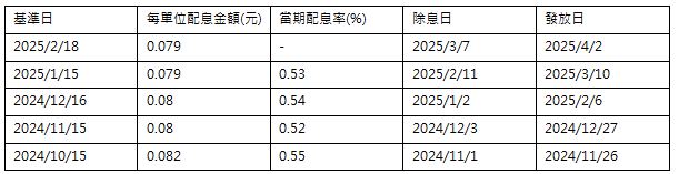全台首檔設計月中評價、月底除息的月配債券ETF-凱基全球10年期以上美元A級公司債券ETF基金 (以下簡稱凱基A級公司債,00950B),公告成立以來的第五次預估配息金額,預計每受益權單位數配發0.079元,除息日訂於2025年3月7日,有意參與本次除息的投資人,最後買進日為3月6日,預計2025年4月2日發放配息。
