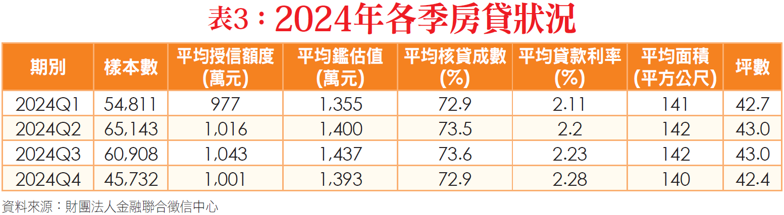 台灣房屋集團趨勢中心執行長張旭嵐表示,央行第七波信用管制去年九月啟動,銀行審核速度和標準的趨向嚴格,透過利率門檻來過濾客戶,換屋族觀望下,只剩新青安還貸得動,順利申貸的物件也都偏向低總價、小坪數,因此建物面積和鑑估值都縮水。