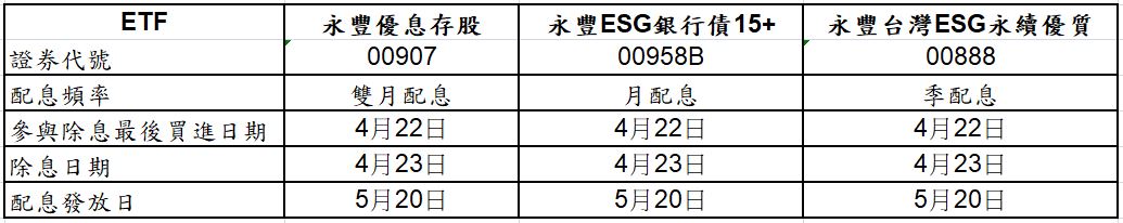 00907、00958B、00888配息出爐 4月22日最後買進日