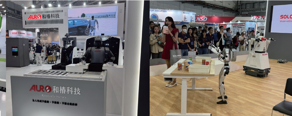 和椿科技展示四款人形機器人,包括代理自中國大陸優必選的Walk S1、S2型號的人形機器人,以及越疆的人形機器人產品。