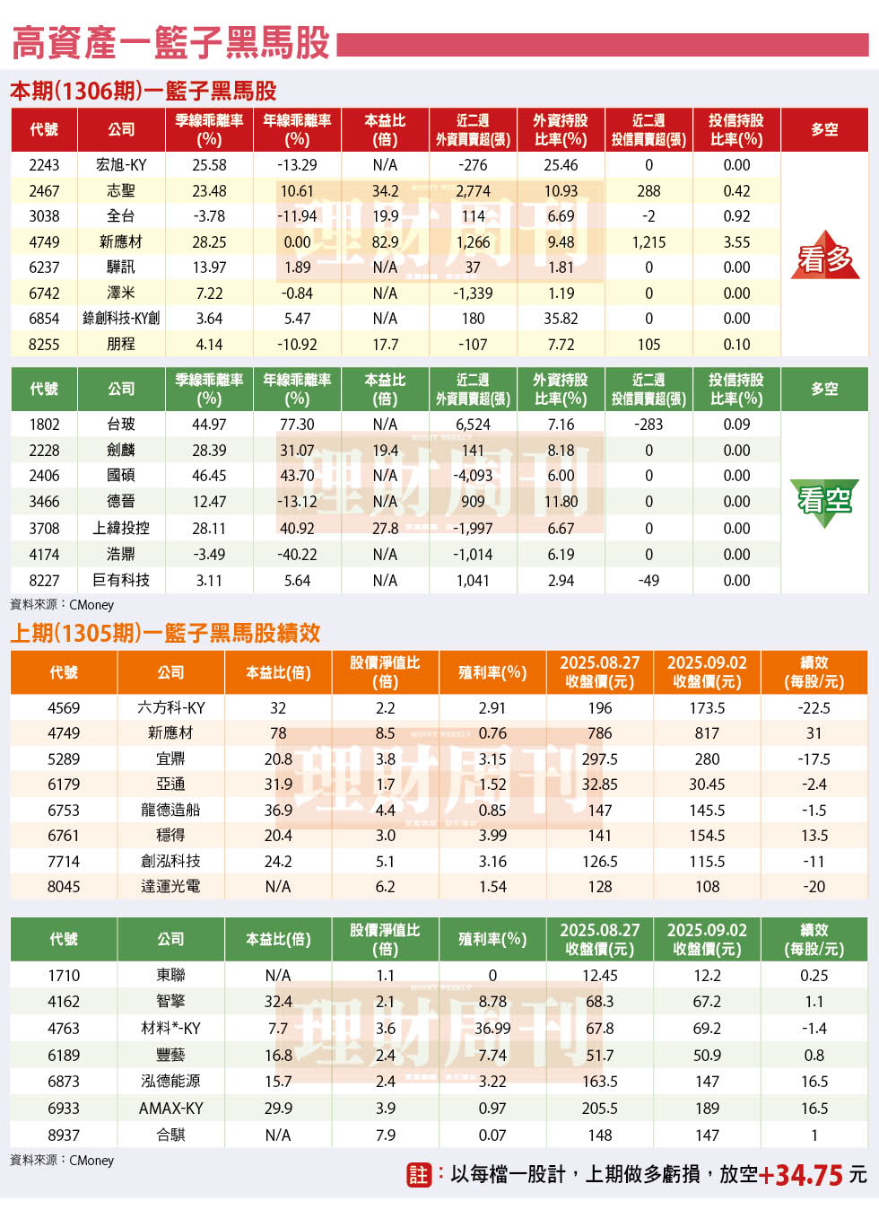 多方倉新應材再賺31元 空方倉整體績效獲利34.75元
