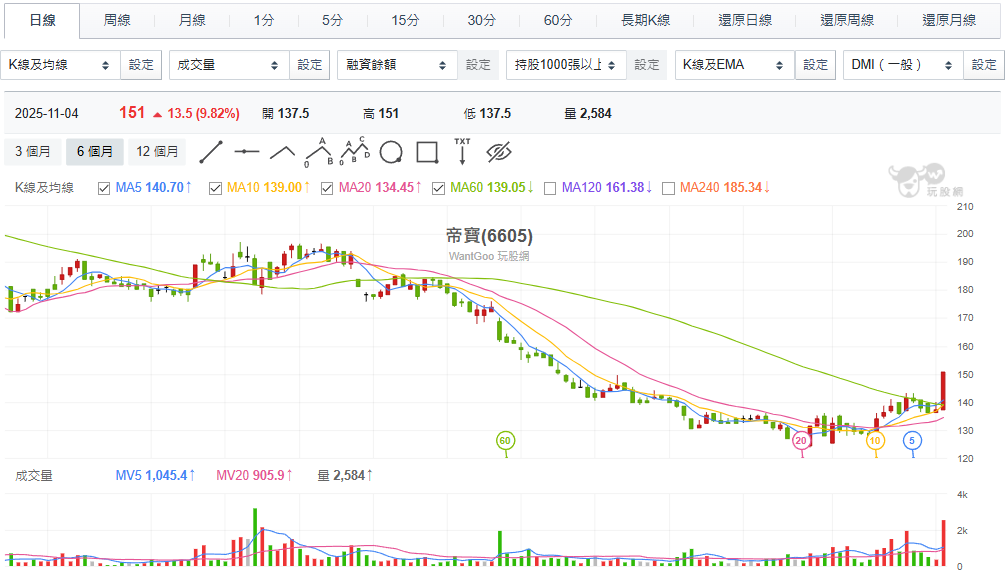 帝寶為台灣汽車零組件中,以車燈與售後維修市場(After-market, AM)為主的企業。其產品不僅供應台灣,也出口北美、歐洲。據分析,帝寶的北美市場銷售約佔其總銷售的 50%。受全球車市景氣放緩、庫存調整,以及關稅與匯率波動影響,帝寶股價明顯回檔。不過,隨著車齡延長與維修需求上升,AM市場仍具中長期成長動能。第四季為傳統旺季,公司訂單可望逐步回溫,今日(11/4)股價強攻漲停。