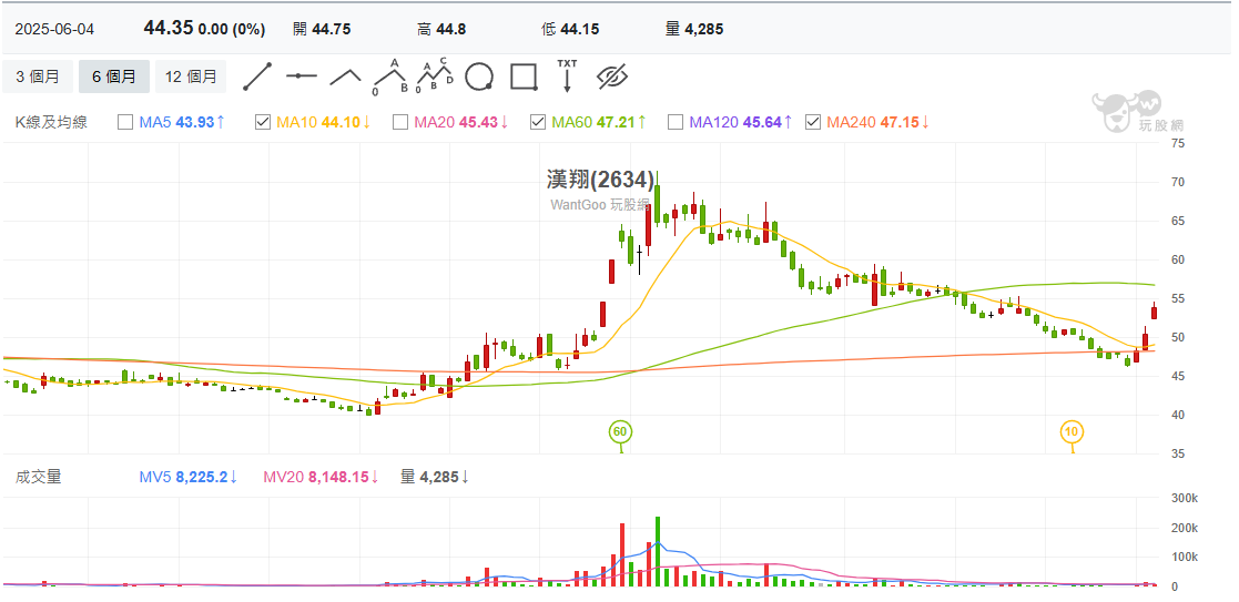 軍工族群因國防部公布 4.8 萬架無人機採購再度反彈,漢翔受年底營收回溫與政策題材帶動走強,但獲利能力下滑、毛利與營益率走低,行情多屬短線預期反應,需留意追高風險。
