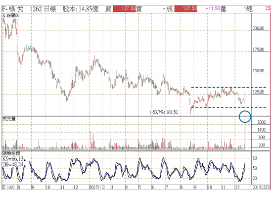 雙向拉伸尼龍BOPA薄膜是一種高檔薄膜新材料,享有「薄膜皇后」美譽。具有阻隔性能、力學性能、印刷性能、環保性能等綜合優勢。廣泛用於冷凍、蒸煮食品、蔬菜、農產品、水產品包裝、醫療用品、化工、電子設備包裝。主要原料己內醯胺(CPL)近年來報價隨油價滑落,自一噸三千五百美元跌至一二八○美元,成本下降,BOPA業者利潤大幅提高。日前全球第二大BOPA薄膜業者日商Unitika(尤尼吉亞),因財務問題宣布退出中國市場,Unitika在中國市占率約四%(五千至六千噸),其原有客戶勢必轉向其他BOPA廠採購,F-綠悅(1262)目前是中國最大BOPA薄膜供應商,可望成為最大受惠者。中國每年對BOPA薄膜需求約二十一萬噸,但總產能只有十五萬噸,存在六萬噸需求缺口多仰賴進口,成本相對較高,所以F-綠悅沒有庫存問題,庫存水位只維持七天。F-綠悅目前總計八條生產線,總產能年產六.三六萬噸,二○一六年拚出貨將成長二成,會拿下中國一半市占率。F-綠悅負債僅一七%,毛利率三六.三五%,今年前三季EPS七.七六元,全年估一○.五元,連續第三年EPS超過十元以上,獲利相當高。但股價自上市以來由二七八元一路盤跌至一○一元,已連續四個月於一一○至一三○元間築底,股價長期偏低,在日商Unitika退出中國市場利多推動下開始轉強,有機會開啟一波新多頭,目前大股東持股七九.○二%,具籌碼優勢好炒作。