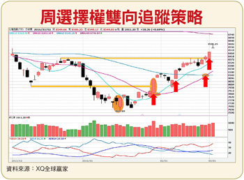 美國供應管理協會(ISM)周二發布二月份製造業活動數據(PMI),由前月的四八.二上升至四九.五,優於分析師預期的四八.六,顯示美國製造業活動雖連續第五個月在緊縮線五十以下,但衰退腳步放緩。眾多利多因素影響下,三月一日美股四大指數皆是以大漲作收,在技術面上是一個相當重要的突破,除了那斯達克外,道瓊指數、標普500及費城半導體紛紛站上了季線。台灣的部分,中央大學發布二月台灣消費者信心指數(CCI)回升至八二.○九點,扭轉過去連續九個月的下跌趨勢,且六項指標是自去年一月以來首度全數上升。尤其是「未來半年投資股票時機」和「未來半年國內經濟景氣」分別較一月上升四.四點、一.六五點,呈現信心回穩跡象。台股近期的表現相當的強勢,受到美股大漲的影響,周三一開盤就跳過八五○○點的壓力區,收盤收在八五四四.○五點,指標DMI顯示盤面由多方控盤,力道還在逐步加強,從整體的走勢來看,未來指數很有機會挑戰年線八七五○點的反壓。三大法人合計期貨淨多單,外資期貨仍為淨多單,目前期貨未平倉淨多單三萬一千六百九十八口,前十大交易人多空比大於一,觀察自營商選擇權部位,買進買權及賣出賣權,從外資期貨部位和自營商選擇權部位來看,法人偏多看待,可佈局溫漲(買權多頭價差)策略因應。
