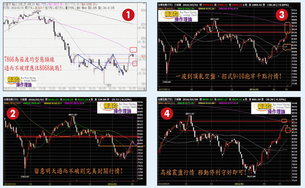 試問,每個人進入股市都能成為贏家嗎?若能,要如何做才能成為股市常勝軍呢?《三字經》有云:「人之初,性本善。性相近,習相遠。」這是說每個人本性都是圓滿美好的,但是因為不良的習性與與習慣而有所差異。就如佛家所說:「一切眾生皆有如來智慧德相,但以妄想執著而不能證得。」這告訴我們每個人都有高度圓滿的智慧,每個人都是佛,佛就是究竟圓滿的覺悟者,對宇宙萬物現象都看得清清楚楚。既然如此,您怎麼不能在股市成為贏家呢?就是因為貪嗔癡這些妄想執著給蒙蔽了。只要除掉貪嗔癡和妄想執著,人人都可以成為股市贏家。《三字經》又說:「苟不教,性乃遷。教之道,貴以專。」這告訴我們,藉由教育訓練是讓我們回歸到贏家和常勝軍的方法,學習時只要制心一處,無事不辦。在此,「期股權勝箱波均」期許把一些高勝率的技術分析教導給各位,技術分析最重要的就是紀律的養成,依照訊號與紀律進出,這樣才能解決散戶在股市常犯的妄想與執著:漲多總覺得要做頭了,跌多總覺得可以危機入市了,心中總沒有一個標準與準則,隨著盤面的波動與消息面起舞,心裡就會捉摸不定、忐忑不安,才會淪落為輸家。若可以藉由一套賺多賠少的技術分析系統,依照紀律與訊號進出,經過長期的學習與薰陶,熄滅貪嗔癡,勤修戒定慧,慢慢的就能成為股市常勝軍。當股價在一個區間震盪修正,造就了一個箱子。當股價向箱子上下任何一個方向突破,就成了N字或倒N字,造就了波浪。當修正與突破交替進行、不斷循環,就成了各種不同級數的均線走勢。不同級數均線的不同均線走勢,又形成了後續短中長線股價的趨勢互動。其中,短均線的一波趨勢波動完畢,即是中均線的一個趨勢段完畢;必然進行短均線的一波修正波動,亦即中均線的一個修正段。中長期均線波動的關係亦復如是。這就是我們利用箱、波、均來抓住長短線各別多空脈動的基本思維。通常我們的盤感都是從K棒紅黑及K線型態直接反應出來。在操作中我們也都有過這樣的經驗:明明收過末跌高了,回檔買進去,確實趨勢也往上走。正想享受坐雲霄飛車的滋味,怎麼漲了一兩根紅棒就收長上影線,又跌回來了?驚慌出場之餘,才發現剛才所看的是五分K線。切換到小時K線一看,原來小時K棒三根紅K上來,才剛過小時K的末跌高,才剛做技術性回檔呢!這代表什麼?這表示我們沒有把長短線的脈動弄清楚,甚至搞混了。就好像明明從台北坐火車要到高雄,一靠站就趕快跳下車,等車子走了,才發現剛才靠站的是桃園站。懊悔之餘仔細想想,台中都還沒到,台南都還沒到,我為什麼窮緊張?是的,如果從台北到高雄是長線,那麼把長線分成北中南來看:台北到台中、台中到台南、台南到高雄就是中線。而桃園靠站只不過是中線之內的短線震盪!中線都還沒完畢呢!如果我們明白自己要的操作級數,如果我們在K線圖上加上適當的均線配對,以上問題就可迎刃而解。當然,一般K線圖上都會有均線,問題是你有沒有去注意它及利用它。箱波均之級數的劃分及運用 1.先將不同級數K線圖,賦予適當級數的均線劃分。 2.之後,只要選擇自己喜歡的操作週期,就可以守一K線圖,而判別行情在某個長線範圍內之長短線趨勢的脈動。 3.繼而找出長線的末端及相反趨勢方向短線的開始,達到用長線保護短線,用短線發掘先機的目標。 以最近大盤這一波千點行情來解說:圖1可以看到當時都是技術分析中所說的空頭排列,為何我們可以沿路往上移動停利做多? 圖2,很明顯的半年線和年線都往下壓制,是中長空走勢,但後面為何能挑戰年線?最後,圖3和圖4證明箱波均的級數劃分的重要性。