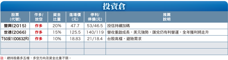 受到出口持續衰退,台灣第一季經濟成長率可能下修的危機,台股兩大支柱台積電(2330)和大立光(3008)對第二季營運動能展望保守,加上年線壓力,大盤出現突破年線後拉回,高點越墊越低,低點越墊越高,呈現一個收斂三角形,準備在五月份來個多空表態,所以才會提示在五二○前後見真章,方向出來順勢而為,即是最高操作法則。豐興(2015):中國大力淘汰落後產能,過去幾年內已淘汰九千萬噸落後鋼鐵產能,接下來的五年還將再壓減粗鋼產能一億至一.五億噸,激勵全球鋼價吹起反攻號角,原物料廢鋼、鐵礦石反彈力道強勁,近期一路走高,也激勵國內鋼筋、廢鋼收購價反彈。在原料暴漲帶領下,本周豐興調漲廢鋼收購價八百元,調漲後為每公噸八千元。鋼筋更每公噸大漲一千元,刷新史上單周最大漲勢紀錄。世德(2066):公司表示,今年在客戶訂單可望緩步釋出下,全年營運有機會重啟成長,包括大廠的中國訂單,去年已小量試樣,今年有機會進入出貨階段。此外,公司也拿下大客戶豐田TOYOTA熱賣車款CAMRY的二○一七年改款新車訂單,預計下半年展開出貨;而GM、Audi、克萊斯勒等客戶,新訂單也將於今年內出貨穩步放量,全年展望優於去年。世德預期,整體今年營收將重啟成長,而美元強勢,匯兌收益仍有利營運,全年獲利將走升。