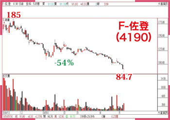 台灣出口連十五個月衰退,經濟數據面臨最長黑暗期,加上時序接近五二○,買盤觀望,台股加權指數回測八一○○點。接下來呢?壞消息最多的時候,往往也是股價相對便宜的時候。生技類股受到浩鼎事件的影響下,近期整體族群股價表現疲弱,新的政府團隊將於五月二十日就職,其中生技業為準總統蔡英文重點扶植產業之一,新政府就任後,預期將陸續推出新的產業扶植新政策,有利生技類股表現。 觀察生技股近期股價普遍低迷,唯獨興櫃的達爾膚(6523)股價逆勢上漲,甚至創新高,目前興櫃股價高達三六○元的達爾膚DR.WU六月掛牌,預計將帶動保養保健族群比價效應,達爾膚去年EPS八.一元,股價最高達三七三元,F-佐登(4190)去年EPS六.四五元,股價相比之下便宜很多。佐登妮絲主要業務為美容美體產品之研發、製造、銷售與美容美體課程服務,毛利率高達六八%,在台灣及大陸設有兩座研發生產基地,產品皆自行製造。F-佐登在中國的布局以加盟店為主,二○一五年加盟店共五六五家,今年F-佐登調整加盟的策略,降低加盟門檻,由原本加盟金人民幣一百萬,下降到五十至六十萬人民幣,擴張中國市場展店速度規模,今年中國加盟店將再增加二十至二十五家。