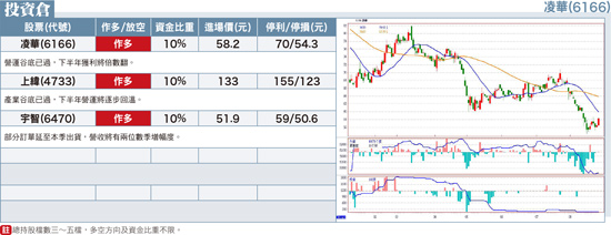 台北國際自動化工業大展將於八月三十一日開幕,將有逾四○○家全球業者參與,攤位超過一三○○個,規模創下二十九年來新高。今年以「迎接工業四.○時代,智能製造思維再進化」為主軸,為產業提供全方位的智能製造解決方案,國內參展的廠商有研華(2395)、上銀(2049)、台達電(2308)、光寶科(2301)、亞德客-KY(1590)、盟立(2464)及和椿(6215)等,隨著題材熱度轉旺,預期股價將有正向反應的機會。其中,工業自動化視覺辨識技術領先同業的凌華(6166),併購英國物聯網軟體公司PrismTech的綜效將於明年逐步顯現,營運及股價有望開始觸底反彈。下半年成長動能將來自量測自動化(MAPS)、嵌入式電腦平台(ECPS)及工業電腦板卡模組(MCPS),受惠國內LED業者需求,量測自動化接單已開始回升;隨著全新的模組化工業雲端架構(MICA)發布,可提供最佳化的效能、最優的性價比及空間利用率,工業電腦板卡模組需求動能將恢復;工業電腦板卡模組則打入韓國、紐西蘭等博弈客戶,營收持續穩定成長。下半年PrismTech也將陸續帶入工業物聯網(IIoT)業務及客戶,有助縮小虧損,降低對整體獲利的負面影響。法人預期第三季起營收將重拾動能,呈現逐季成長的趨勢,下半年獲利將較上半年成長一.五倍。另隨著法人調節賣壓減輕及技術指標翻多,股價已有落底反彈跡象,投資人可持續追蹤後續表現。