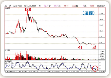 順達(3211)為國內第二大鋰電池廠,近年來受到中國大陸低價鋰電池傾銷的影響,獲利年年下滑,由二○一一年EPS十一.七元降到二○一五年四.六三元。近期三星最新款手機Note 7電池爆炸事件,全面召回多達二五○萬支手機,也突顯品質的重要性,而非一直以價格優先導向,順達有機會迎轉單利多。順達股本十五.二億,年度營收二一六億,營收周轉率高達一四二二%,可見手持裝置越來越多,對鋰電池需求與日俱增,是高需求產業。第二季營收四十.七億,存貨十六.八億,存貨天數約一個月,正常的安全存量。上半年EPS一.六九元,和去年同期一.七元相當,下半年是出貨旺季,全年可保持五元以上獲利,以九月六日收盤價四十四元計算本益比八倍,具投資價值。順達股價走了五年空頭,由二○一二年一八八元盤跌到今年四十一元,跌幅相當深。近期因三星手機電池爆炸事件低點出現轉機,同時出現明顯買盤,九月六日收四十四元,漲幅六%,成交量一六四四張,比前一日二○七張大增七倍,目前日線KD指標在超賣區(三十七、十九)形成黃金交叉,顯示短期多頭形成。週線KD指標也於超賣區(二十七、十八)出現黃金交叉,顯示中期多頭形成。目前帳上每股淨值五十.七四元,股價卻只有四十四元,顯然跌過頭,月線四十三.四元站穩後短多確認,中期有向年線四十八元回測機會。