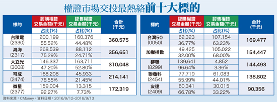 本周(九月十二~十三日)第一名是今年股價頻創新高,卻讓不少投資人扼腕的台積電(2330)。受惠非蘋陣營中低階手機需求強勁,加上蘋果iPhone 7的A10處理器開始拉貨,台積電自結八月合併營收九四三.一一億元,月增二三.五%,年增四○.七%,創單月歷史新高。累積前八月合併營收五九六○億元,年增三.六%。台積電十奈米製程年底將有更多產品完成設計定案,預期二○一七年第一季開始貢獻營收,產出逐季增加,預估明年第四季十奈米營收將高於二○一四年第四季之二十奈米,二○一七年市占率將超過七成,營收成長動能強勁。鴻海(2317)公告八月營收三一二六.九七億元,月增約六.七%,符合市場預期,隨著iPhone 7開始出貨,單月營收重回三千一百億元以上,年增六.八%,改寫歷年同期新高,九月業績表現將更好。與七月相比,八月運算、通訊和消費電子產品均有成長。蘋果新品上市,鴻海負責組裝大部分的iPhone 7和獨家組裝iPhone 7 Plus。鴻海富士康在中國大陸河南鄭州廠區和廣東深圳觀瀾廠區產量九月起可大幅拉升。在除權息後看好後市的投資人依然不少。