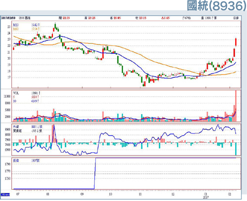 缺水危機再起,吸引市場資金目光開始轉向水資源概念股。自去年底以來,全台各地降雨量偏少,加上春節零星降雨未帶來足夠水量,估計北部石門水庫、中部鯉魚潭水庫、南部曾文水庫實際降雨量僅約歷年平均值的二五%,導致水庫蓄水率降至六○%。由於目前正值春耕期,農業用水陸續展開,若降雨量再無法增加,供水壓力將逐步加大。水利署已召開水情檢討會,發現新北、桃園、新竹、苗栗、台中、嘉義、台南及高雄八縣市用水均拉警報,若近日仍無明顯降雨,石門水庫供水區的新北市板新、林口及桃園地區,本月二十三日將開始實施夜間減壓供水的第一階段限水措施,成為今年首個受影響供水區。此外,行政院草擬「擴大內需加強投資台灣計畫」,包含軌道、綠能、水環境及數位等四大面向,總投資規模逼近一兆元,其中用於供水、水資源開發等建設與汙水下水道的投資金額達五百億元,更增添有助水資源概念股未來營運動能的想像空間,主要承接政府標案的國統(8936),可望成為最大受惠者。國統今年來已陸續取得中國山東省東營市政府、苗栗縣政府、經濟部水利署的標案訂單,加上利多題材的激勵,帶動股價自底部逐步向上翻揚,二月八日更爆出一.三萬張的逾一年大量,帶量突破年線反壓、站上所有均線,強勢表態的意味十分濃厚。若接下來營收也能跟上回溫的腳步,將有利本波反攻行情走得更遠。