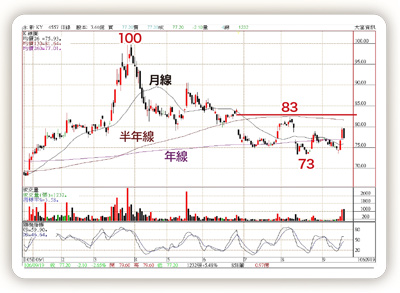永新控股(4557)生產汽車煞車系統零組件,專門供應售後維修市場。今年美國連續三個颶風,造成各地災情不斷,世界各地的氣候變遷,也都出現令人意外的破壞,反而創造了汽車維修、汰換的需求。永新控股煞車零件供應全球各車廠,毛利率三六%還不錯,二○一六年營收十四.二億元,創歷史新高,以股本三.四二億元計算,週轉率四一五%,營運效能強,EPS七.一四元,為歷年最佳,是高獲利公司。今年前八月營收八.九一億元,上半年EPS三.二八元,年成長四%,今年還是可以達EPS七元成績,以九月十九日收盤價計算,本益比十一倍,具長線投資價值。永新控股負債比三四%,財務狀況良好,每股淨值三十四元,董監事大股東持股四九%,有籌碼優勢,小型股活潑好炒作,今年第一季股價一度上漲達一百元,隨後一路盤跌,加上除權股價回測七十三元,跌幅二七%,近三個月股價維持於八十三至七十三元間形成築底期,未來只要八十三元頸線站上,有機會再出現新的一波多頭走勢。永新控股目前股價月均線於七五.九元,年均線七十七元,近二個月築底都企圖力守年線支撐,只要守穩年線往往都是多頭的開始,目前已是多頭排列,剩下半年線八一.六元及頸線八十三元最後壓力,站上後多頭確認。