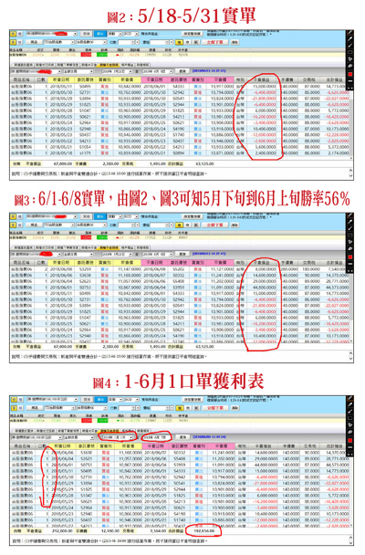 因為目前AI程式交易的平均勝率在五○%左右,所以有一半的交易是虧損的,但偏偏五月份的交易勝率則降到四○%,這也讓幾位朋友很擔心。而且我還希望他們這時加碼操作,我不說還好,說了以後他們更擔心了,所以我決定花點時間跟他們說明程式的原理,看看是否能解除他們心中的恐懼。攤開組合交易歷史回測數據,每一年都是正報酬,但這不是重點,重點是有一項獲利與損失比為一.七的數據,如圖一。在上萬筆的交易中,統計出每筆交易平均虧損為七千三百元,平均獲利為一萬三千元。此統計數據代表平均每筆交易會損失七千三百元,或獲利一萬三千元,因此也就不必害怕交易虧損了,因為虧損後,下一筆會賺一.七倍回來,這個數據是對程式交易的信心度建立,就是不怕虧。一般投資朋友遇到連續虧損,就會對程式失去信心,進而錯失後面獲利機會,一旦你清楚這個大數據的獲利虧損比,就應該有信心的繼續交易下去,把該賺的賺回來。所幸我們AI程式五月下旬到六月上旬的實單交易(圖二及圖三表示勝率回到五六%,圖四表示一至六月一口單獲利表)也佐證了這個獲利虧損比。所以有好的程式,再加以實單佐證下,就是要不怕虧。當然,我的這幾位朋友不僅放心了,還說早知道五月下旬就加碼。另外再提一個很重要的不怕虧的理由是,程式有短單與波段單的最大停損機制,有經驗的程式設計者不會讓交易風險過度曝露在市場中。例如在買賣訊號條件成立之前,仍需有最大停損設定,避免行情又快又大的風險。就如我們的程式,短單預設停損為○.三%及波段一%的停損,這樣才不會在大行情中擴大損失。回到上周未說明的兩個程式重點之一,資金控管部分,以最適當的資金部位比操作。避免遇到最大連續虧損時,再巧遇突發事件而造成可能需要強制停損平倉的狀況。那什麼是最適當的資金部位比呢?依期交所商品台指期貨,一口合約價值規格約為二二○萬元(11500×200=2,230,000)。可以最低交易保證金為八萬三千元(相當於向期交所融資九六%操作)。但以此八萬三千元操作槓桿太大,應縮小槓桿比例。例如一般散戶以八萬三千元操作一口台指期貨,在遇到波段一百點停損時,就損失二萬元,以二萬元占比八萬三千元計算,損失為二四%的情況下,風險壓力都太大。
