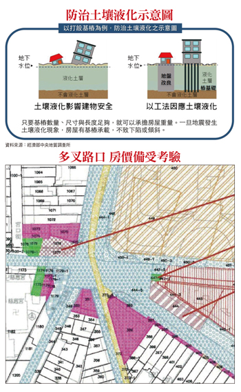 近年由於地震頻繁,再加上斷層帶與土壤液化議題備受關注,因此,購屋之前應先至經濟部中央地質調查所「土壤液化潛勢查詢系統」(詳請參閱附圖)查閱相關資料。按該系統主要功能為查詢土壤液化潛勢分佈、營建署配套措施、下載圖檔、門牌地址定位、Q&A等,其中Q&A十八項重要議題頗具參考價值,購屋前建議上網查詢相關訊息,俾保障自身購屋權益。茲再摘錄Q&A當中四項淺顯易懂,攸關購屋權益的基本認知觀點,以供參考。1.什麼是土壤液化?土壤液化是因為「砂質土壤」結合「高地下水位」的狀況,遇到一定強度的地震搖晃,導致類似砂質顆粒浮在水中的現象,因而使砂質土壤失去承載建築物重量的力量,造成建築物下陷或傾斜。2.土壤液化通常會在什麼地點出現? 基於砂質土壤與地下水是構成土壤液化的其中兩項要件,故土壤液化較容易出現在河川下游的沖積平原及砂質海岸。3.公開土壤液化潛勢圖的意義是什麼? 因為0206地震引發民眾對於土壤液化的疑慮,因此政府基於保障民眾「知」的權利,以及資料公開的精神,除將經濟部中央地質調查所製作的初級精度土壤液化潛勢圖公開外,也由內政部營建署同步啟動後續的配套措施。4.在可能發生土壤液化現象的基地上,什麼樣的建物才安全? 建築物如果有兩、三層的地下室,或是建築物基礎有打樁深入地下,基本上都沒有土壤液化災害的疑慮。近年由於地震頻繁,導致建物龜裂甚或傾斜倒塌案例頻傳,其次,每逢颱風豪雨侵襲,部分低窪地區經常遭受嚴重水患,連帶房價亦大幅重挫,就購屋角度而言,不僅應避開地質敏感地帶,例如斷層帶、土壤液化潛勢區等,對於缺點較多之產品亦應迴避,俾免保值性不足而致權益受損。 一、低窪地區一般而言,低窪地區常易一雨成災,並且每遇颱風來襲也較易帶來水患,不僅房價重挫,即使想要廉價出售,未必有人接手,導致低窪地區災後很長一段時間房地產交易陷入停滯狀態。