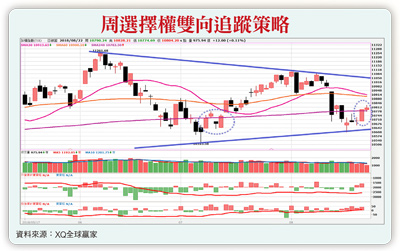 川普再一次將砲口對準聯準會,而且這次更將目標鎖定主席鮑威爾。七月中旬川普批評聯準會升息政策導致美元指數回落一.六%,這次川普又讓美元指數跌了二%。受消息面干擾,美元進入短線整理,也讓緊繃的新興市場有了緩解的機會。原本美元兌新台幣離三十.九僅一步之遙,川普放炮讓台幣回到三十.七附近,流動性緊縮的壓力也暫時放緩。此外,摩根史坦利也將台股評級調升為買進,讓原本在年線下方遊走的台股有了反彈的動能。有趣的是大摩這次卻對台灣科技族群興趣缺缺,反而將重心放在金融與傳產,後市外資在各產業的交易比重,值得觀察。加權指數本周重返年線,且走法和七月初相似,都是先拉一支紅K貼上年線後,隔天再轉個身翻上去。短線上技術面可以確定是暫時止穩,但這次反彈能不能再攻下一萬一千點,就得看籌碼是否肯配合。從外資在台指期未平倉部位來觀察,淨多單維持在三萬六千多口水平,外資多單這周停止減碼,但也看不到有什麼積極作為。自營商在選擇權未平倉部位,Sell Call為五千多口左右,Sell Put減持至一千多口。可以發現自營商的態度從原本積極搶反彈的Buy Call和Sell Put的布局,轉變為保守的Sell Call和Sell Put。整體觀察,技術面與籌碼皆表現保守,而且方向性並不明確,在此環節可利用突破(買方跨式或勒式)策略來等待市場表態。