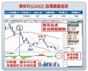 指數一如預期反彈來到一一○○○點關卡,短期在市場居高思危、美國聯準會升息預期心理,以及美國總統川普於聯合國大會演說中,再度重申對貿易的強硬立場,將不再容忍貿易濫用,並點名批評中國的干擾影響下,近期指數於關前再度出現震盪整理的格局,成交量也急速縮減至千億元左右。對於短線關前震盪洗盤整理,老師認為無須過於擔心,在多方掌控格局不變的前提下,後市指數仍將有續戰前高機會可期。(一)法人持續力挺偏多不變,九月二十五日外資持續加碼買超達四七.三億元,累計近六日買超已達四三八.四四億元,投信及自營商亦同步站在買方,分別加碼買超三.八四及十一.四一億元。(二)均線扭轉走揚向上推波助瀾,十日線、月線、季線、半年線及年線等短中長期均線同步翻揚向上,配合年底九合一選舉行情、第四季上漲機率高達八成、新台幣貶值第三季財報利多效應、年底法人作帳行情、資金行情(今年現金股息高達一.四兆),以及陸、港股紛紛止穩強彈上漲、日經225指數率先大漲再創新高等,不論是訊息面、籌碼面或技術面等均處於相對有利條件,有利指數持續向上。(三)類股與個股之間維繫良性輪動輪漲格局,隨著市場人氣可望回籠,目前就待被動元件國巨(2327)及華新科(2492)表態,一旦被動元件族群能再度接棒領軍表態上漲,後市行情將不容小覷。隨著台股行情處於相對有利條件,後市行情不看淡,特別是就歷史經驗來看,第四季行情通常是台股表現最為亮麗的時候,在持續看漲不變下,短線若有拉回逢低都仍將是「挑好股、買主流、賺大錢」的好機會。【個股推薦】華新科(2492)產品線包括積層陶瓷電容器(MLCC)、晶片電阻(Chip Resistors)、感應及控制元件、高頻設備及模組等產品,為全球前五大MLCC製造商。主要利基題材有:(1)營運與獲利持續往前衝:受惠於缺貨漲價題材持續延燒、MLCC出貨持續暢旺及產能陸續開出下,八月營收衝破六十億元,再創單月歷史新高,達六一.五六億元,月增一一.七七%,年增二一二.三七%。自結八月稅後純益三一.六億元,月增一五.八%、年增八三四%,每股純益六.五三元。七至八月稅後純益五八.八九億元,每股純益十二.一八元,超越上半年。累計一至八月營收二九六.九七億元,年增一一八.二九%,稅後純益一一五.六五億元,每股純益達二三.九二元,優於市場預期。(2)前景展望持續看好:華新科看好聯網汽車、5G及物聯網等應用將帶動中高階MLCC需求成長,目前被動元件設備交期仍長,且內建與外接式聯網車用需求持續增長,聯網車用級被動元件供應持續吃緊,加上自年中開始,5G及其周邊衍生應用需求飛速成長,預估被動元件供應將長期吃緊,未來部分中高階品項MLCC缺貨將成為常態,至二○二○年都將供不應求。儘管第四季有十一長假及歐美聖誕節假期,預期整體營運仍持續看旺,因應客戶需求,華新科積極擴產,預估今年擴產約二○%,明年也將持續擴產,公司也將進行產品組合優化,預期可增加整體產值,帶動業績拉升。股價嚴重超跌,隨著止跌契機浮現,目前就待一根長紅K棒放量表態上漲,則後市將有一波報復性反彈行情可期(※基本面資料若有異動,依公開資訊觀測站最新訊息為主)。【操作建議】低接不追高,下檔只要守穩於一九五元關卡不破,逢低仍可留意買點機會,一旦控盤指標及攻擊力道可雙雙翻紅轉強,後市隨時可望有一波報復性反彈行情可期,設好停損停利(詳見附圖說明)。
